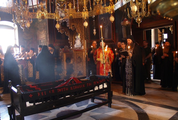 Монахи одновременно пребывают и в Страстной пятнице, и в Пасхальном Воскресении, непрестанно переживая “живоносное умерщвление” и “радостнотворный плач”.