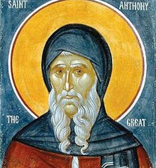 Святой Антоний Великий родился в Египте около 250-го года от благородных и богатых родителей, воспитавших его в христианской вере. 18-ти лет он лишился своих родителей и остался один с сестрой, которая была на его попечении. Однажды он шел в церковь и размышлял о святых апостолах о том, как они оставили все в этом мире, чтобы следовать за Господом и служить Ему. Входит в храм и слышит евангельские слова: “Если хочешь быть совершенным, иди, продай имение твое и раздай нищим, и будешь иметь сокровище на Небе, и иди вслед за Мной (Мт. 19:21). Эти слова поразили Антония, как бы сказаны были Господом лично ему. Вскоре после этого Антоний отказался от наследства после родителей в пользу бедных жителей своего селения, но недоумевал, на кого он оставит сестру. Озабоченный этой мыслью, он опять идёт в храм и слышит там опять как бы к нему обращенные слова Спасителя: “Не заботься о завтрашнем дне: завтрашний день сам будет заботиться о себе: довольно для каждого дня своей заботы (Мт. 6:34). Антоний поручил сестру известным ему христианским девственницам и оставил город и дом, чтобы жить уединенно и служить одному Господу.