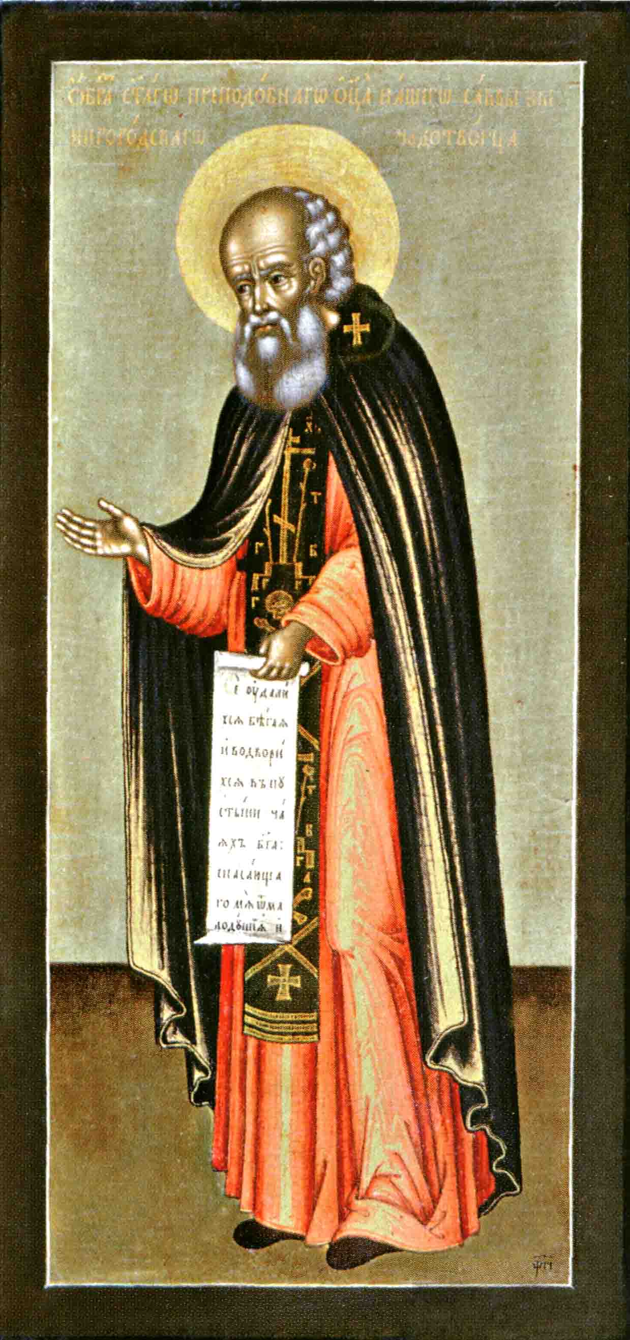 Преподобный отец наш Савва с самых юных лет возлюбил Христа и возненавидел мир. Он пришел к преподобному Сергию Радонежскому и принял от него пострижение. В иноческом образе он, стремясь к небесным благам, уготованным от Господа угодившим Ему, с особенной ревностию боролся со страстями и упражнялся в добродетелях.