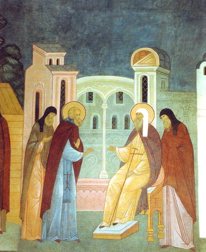 Прп. Сергий, трапезуя с братией, безмолвно поклонился благословению свт. Пермского Стефана, проезжавшего в Москву далеко от обители