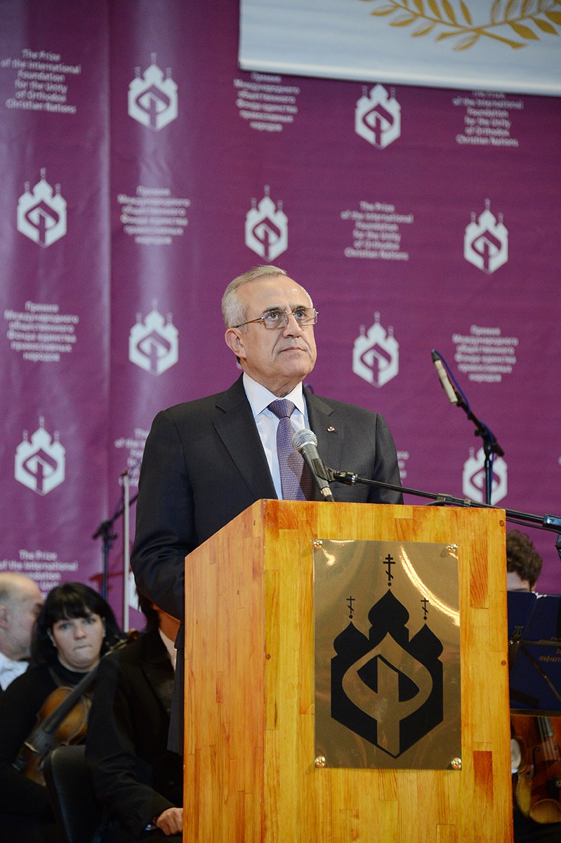 Президент Ливана отметил, что подлинное величие народа немыслимо без духовных ценностей — «тех ценностей, которые еще в древнейшие времена сложились на русской земле, благодаря которым ее национальное наследие обрело такое богатство и которыми начертаны славные страницы русской истории».