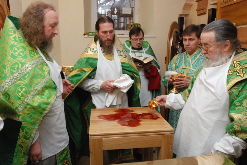 После утверждения престола владыка Ириней прочитал молитву, в которой, подобно Соломону, просил Господа ниспослать Пресвятого Духа и освятить храм и жертвенник, чтобы бескровные Жертвы, возносимые на нем, были приняты в Небесный Жертвенник и низвели бы оттуда на человека благодать небесного осенения.