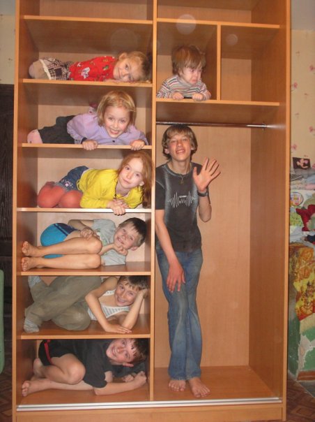 К вопросу о детских открытиях и о словах Льюиса. Я долго не мог понять, почему хочу усыновить именно десять детей. Лет пять назад включаю телевизор, и идет фильм «Однажды двадцать лет спустя» с Н. Гундаревой в главной роли. Она играет маму десяти детей. А история рассказывает о том, как она их воспитывает. И вот когда я смотрю этот фильм, вдруг вспоминаю, что видел его, когда учился во втором классе школы. Я тогда повернулся к родителям и сказал, что когда вырасту, у меня будет десять детей. Я несколько дней ходил тогда под впечатлением, представлял, что у меня будут комнаты, и в них будут стоять двухъярусные кровати, будут шкафы и два стола. И приехав к нам, вы обнаружите, что все кровати до одной – двухъярусные. Мечта была мне по сердцу и сбылась, когда я о ней забыл. И через много лет теперь вспомнил, что именно настолько сильно повлияло на меня в детстве.