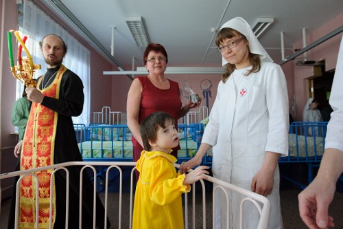 – У меня есть частное мнение, что пора их приглашать на наши церковные съезды социальных работников, надо проводить с ними встречи и беседы на приходе. Например, батюшка ходит в интернат, и он пригласил на чаепитие директора интерната, заместителя по педагогической работе, заместителя по социальной и по медицинской работе, и по хозяйственным вопросам тоже. Пять человек пригласить на чай, посидеть, поговорить в нормальной обстановке, не на положении просителя «пустите нас к детям», и не на положении проблемы – «сейчас мы будем лезть в ваши дела», а просто познакомиться, понять проблемы, предложить участие, рассказать о важности милосердия.