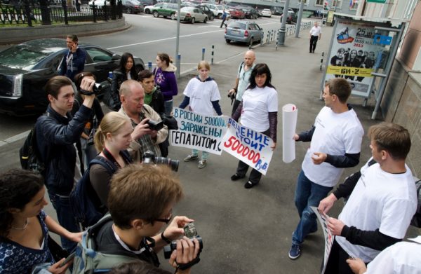 Через полтора месяца мы уже вместе были у Минздрава с плакатами и листовками. Смысл акции был такой: “Я не виновата, что у меня гепатит и не знаю, откуда он. Им может заразиться каждый. Людей надо лечить, дайте доступ к лечению”.