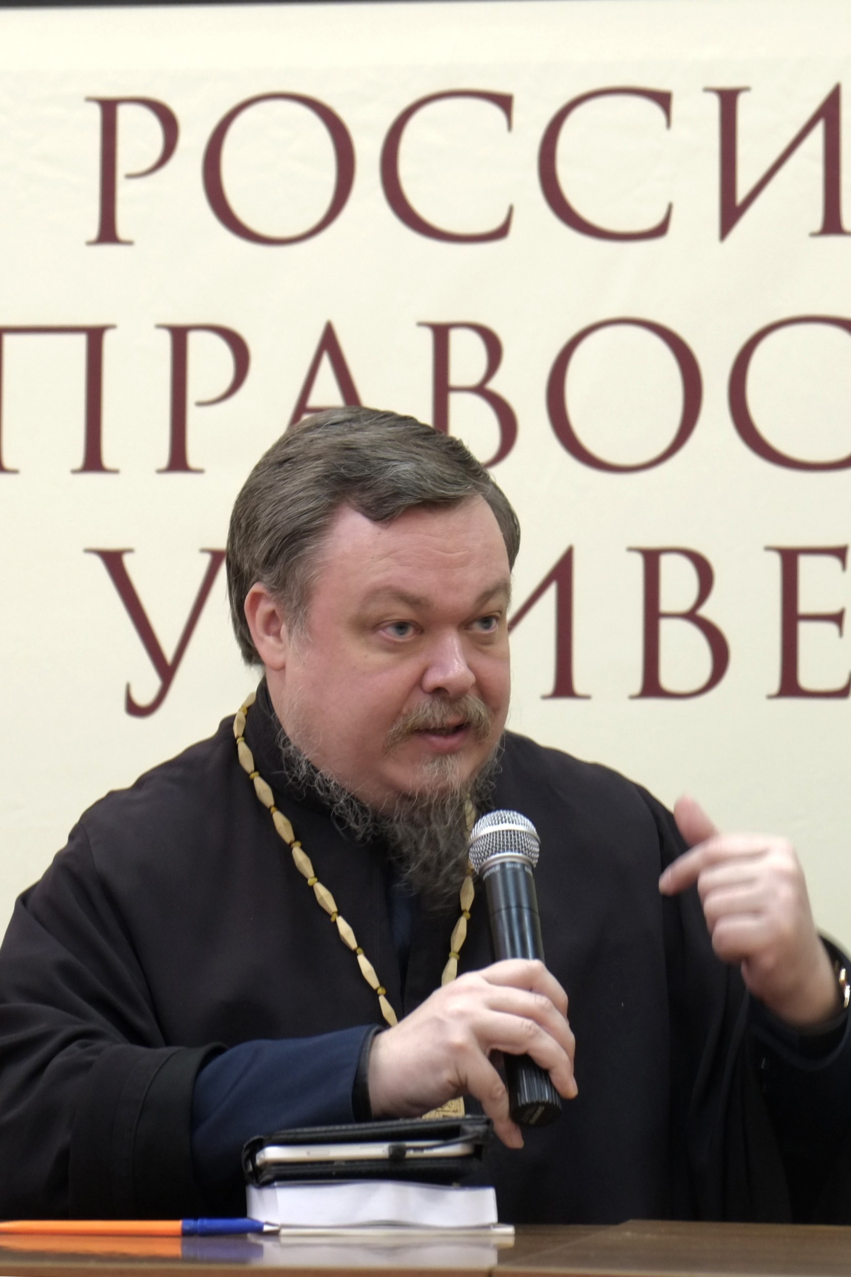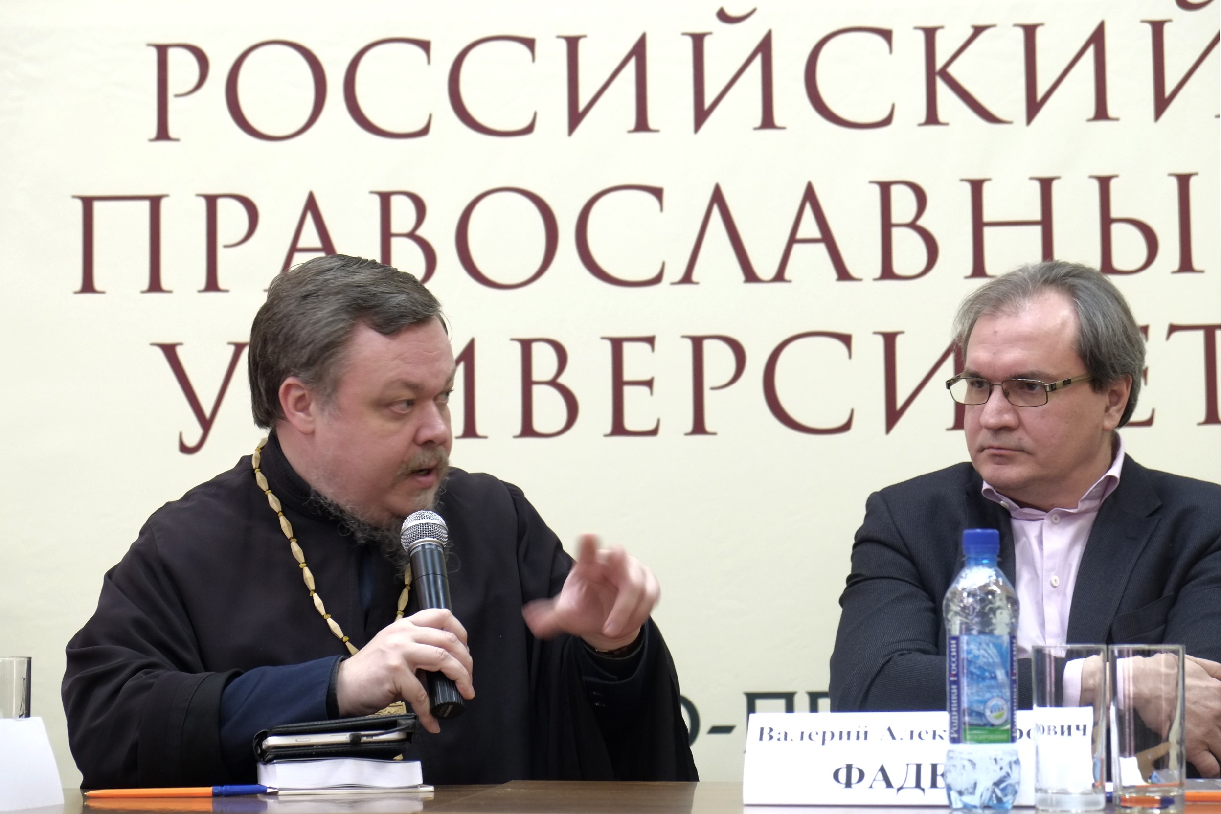 Протоиерей Всеволод Чаплин, посетовав на отсутствие Wi-Fi в здании университета, на память привел слова Патриарха о необходимости понимания единства нашей истории, сказанные им на Русском Народном Соборе: