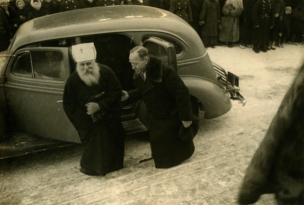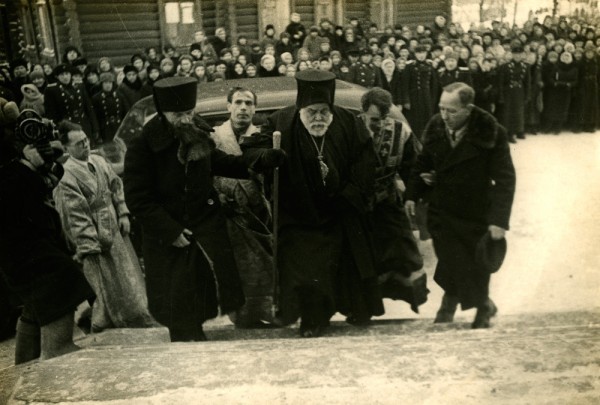 *Даниил Андреевич Остапов – бессменный секретарь и келейник будущего патриарха Алексия на протяжении почти всего его архиерейского служения (вместе со своей семьей составлял круг самых близких и родных людей патриарха). В начале войны семья Остаповых попала в оккупацию на территории Новгородской области. Митрополит Алексий провел всю блокаду в Ленинграде, проживая на хорах Николо-Богоявленского собора. Несколько лет они ничего не знали о судьбе друг друга. Письменное общение возобновилось только 24 августа 1944, первая встреча после разлуки произошла в ноябре 1945 года, а полное воссоединение в 1946 году.