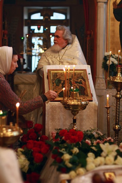 В 30-е годы, когда этот храм еще был открыт, она впервые приносила сюда свои еще детские исповеди, священномученик Сергий принимал ее здесь. Тут она пролила свои слезы и получила первое Христово утешение. Здесь были и ее родители – покойные дедушка Николай и Зоя Вениаминовна. Она была свидетелем закрытия этого дивного храма, попрания и превращения его в неподобие храма. К счастью, сегодня он вновь воскрес из пепла, и дает нам радость и утешение. Она была свидетелем жестокой войны, где погиб ее брат, где она трудилась на трудовом фронте, юная девушка. И Господь послал ей великое благо – в селе Гребнево она обрела свою любовь, свою радость, своё утешение, встретив нашего отца.