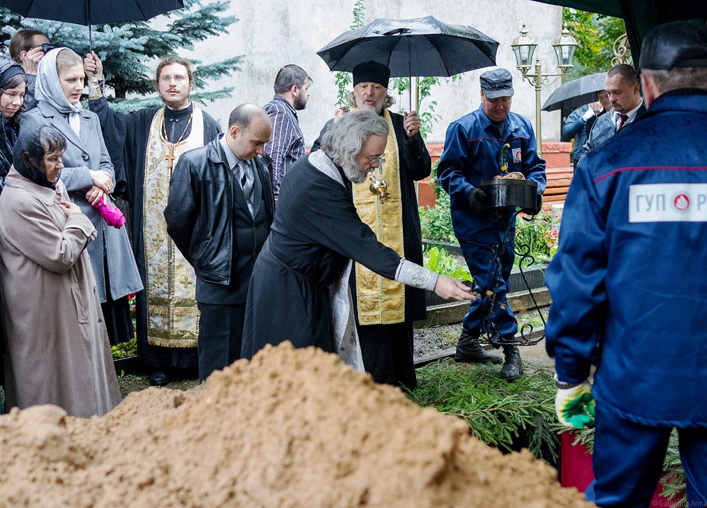То, что мы отпеваем Толика в воскресный день – Малую Пасху и сегодня собралось столько народа, сколько у нас в храме собирается на Пасху — все это символично. Господь нам открывает таинственную завесу, которая стоит за порогом смерти. То, что сам Святейший Патриарх Кирилл благословил, чтобы погребение Анатолия совершилось в Донском монастыре — месте намоленном, месте святом, месте, в котором какая-то особая благодатная атмосфера, куда можно придти отдохнуть душей — это тоже знак Божий. Теперь можно придти в Донской монастырь на еще одну дорогую могилку.