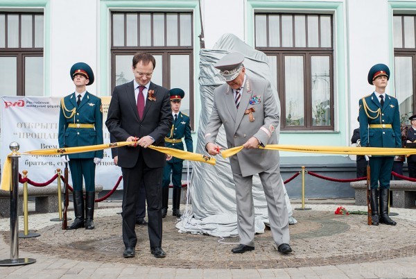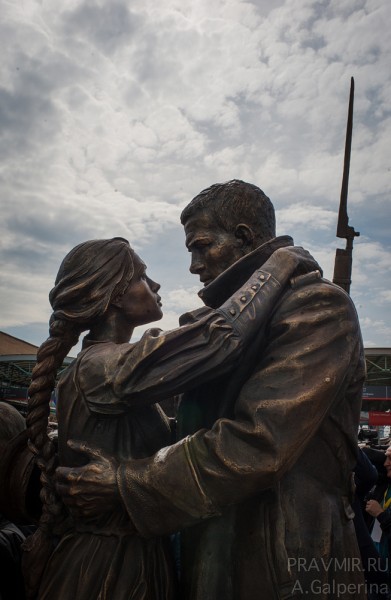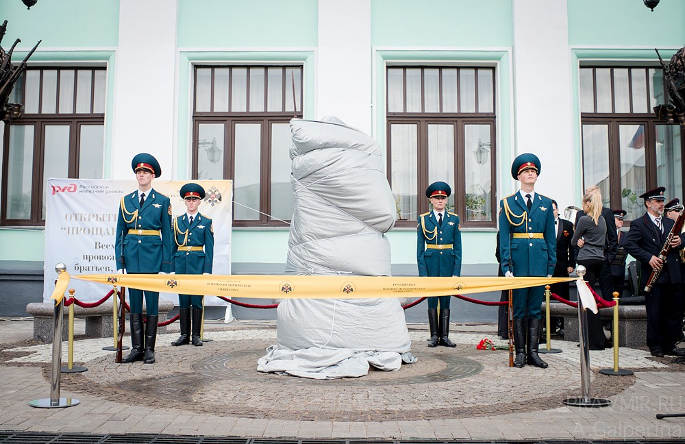 Владимир Якунин, президент ОАО «РЖД», также принявший участие в создании – материально и морально – памятника сказал: «Это памятник верности и преданности мужчины своему долгу и женщины – своему мужчине, своей семье и своей стране. К следующему празднику Победы мы сделаем специальную акцию. Если нас поддержат, мы хотим организовать не традиционный железнодорожный поезд Победы, а необычный. Мы хотим пригласить стать его пассажирами ветеранов коалиции, боровшихся с фашизмом, а также молодых людей, чтобы они ехали вместе с ветеранами. По какому маршруту поедет поезд – мы решим позже, после консультаций с коллегами с западно-европейских железных дорог. А пока провожать и встречать пассажиров, которые прибывают в Москву, будет марш «Прощание славянки».