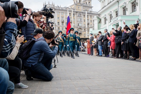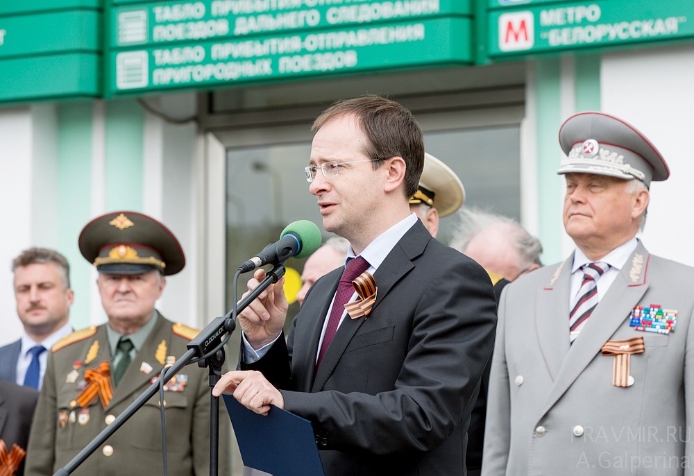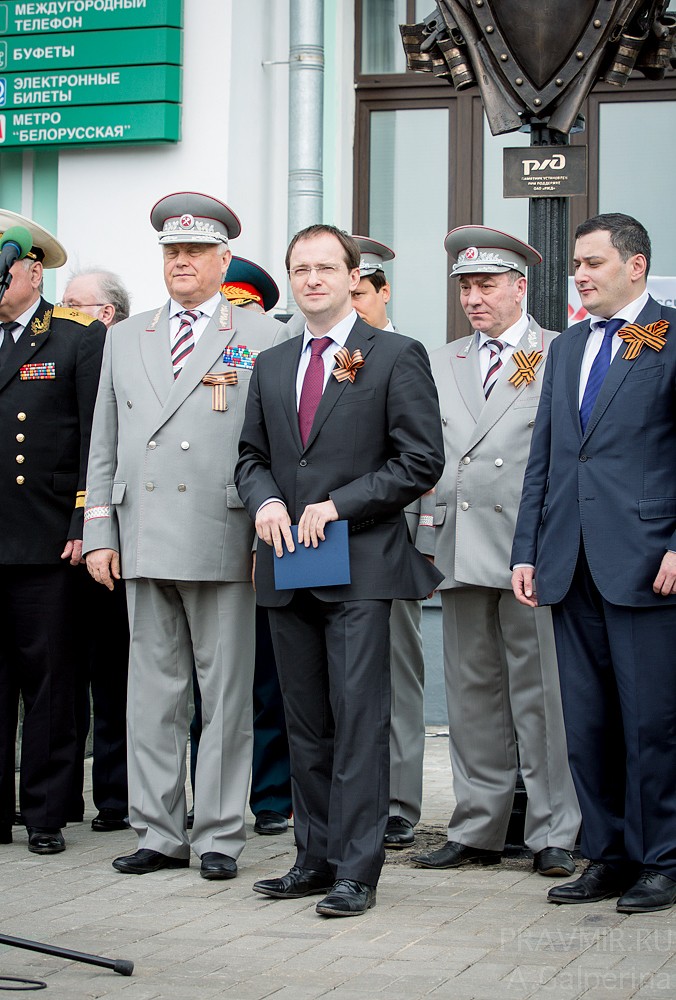 8 мая на площади Белорусского вокзала был торжественно открыт памятник «Прощание славянки», названный так в честь одноименного марша, под который уходили на фронт солдаты.