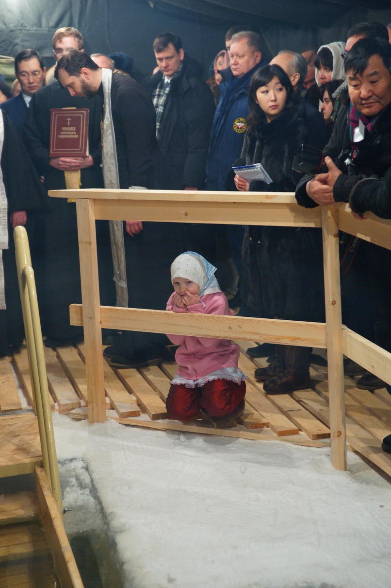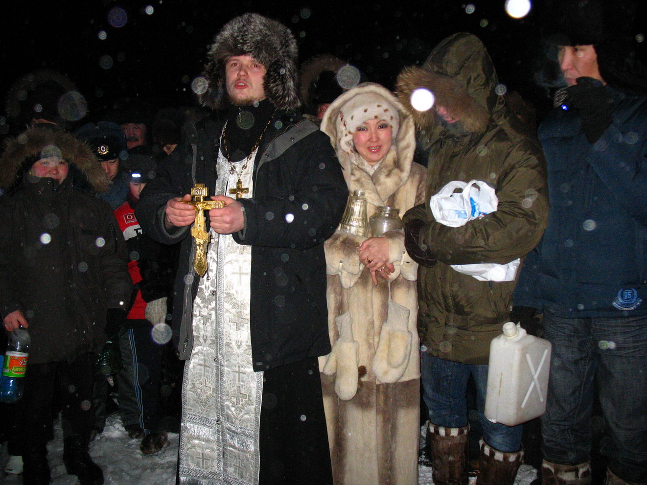 В прошлом году по всей Якутии окунулось в воду около 65 тыс. человек. Почти во всех районах, где есть поблизости водоём, устраивается купание. Однако, не каждый приход Якутской епархии, с её огромными расстояниями и маленькой плотностью населения имеет своего приходского священника. Несомненно, где-то будет людям великая радость в праздник. К ним приедет батюшка, которого они могут ждать целый год, ждать… как Бога. Наверное, в центральной России это трудно представить. Порой идёшь в рясе по посёлку где-то в отдалённом улусе Якутии, а дети показывают пальцем и кричат: «Танара! Танара!» (что значит Бог). Помню, ещё в начале миссионерской деятельности, мы приехали в поселок Югорёнок на границе с Охотским краем, там священника не было лет пять, как минимум. Люди со слезами радости на глазах нас встречали и говорили: «Ждали вас, как Бога!… Так принимают священника, настолько дорого и ценно общение с ним.