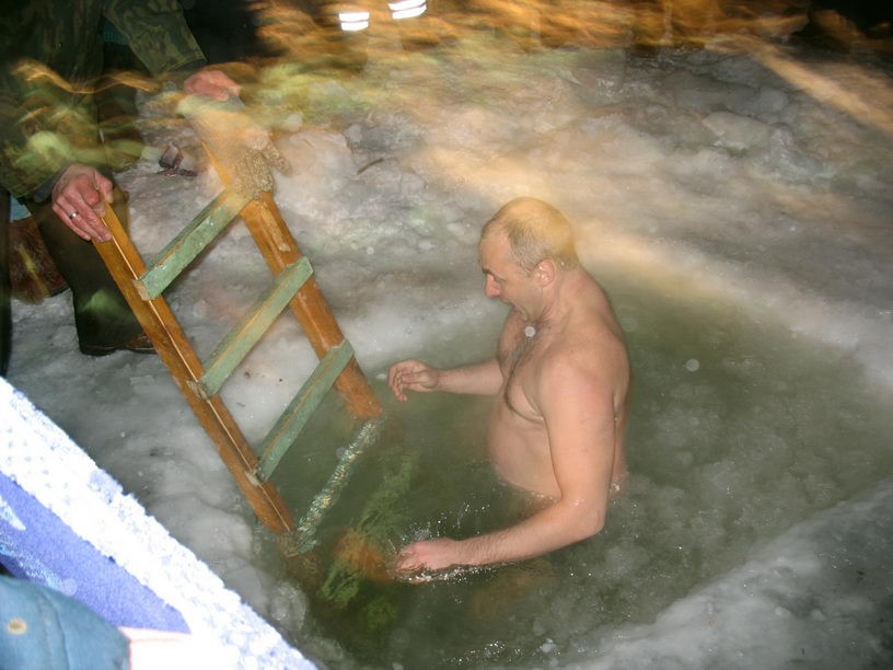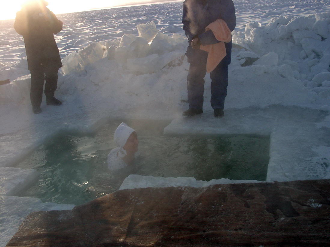 Когда я, человек, приехавший в Якутию из центральной России, впервые в жизни в 2006 году отважился подать добрый пример своим прихожанам и вместе с ними окунулся в прорубь, то получил незабываемые впечатления. Подумать только, температура воды была +4 при -52° воздуха! В такой мороз мало кому придёт в голову просто так искупаться. Однако мы окунались и неоднократно.