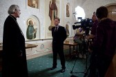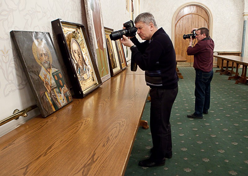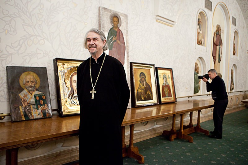 Протоиерей Владимир Вигилянский, пресс-секретарь Святейшего Патриарха Кирилла, показал журналистам иконы и рассказал о волне антицерковных акций этой весны.