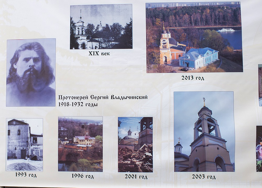 В этом году 20 лет как мы начали восстанавливать храм. Есть фотографии, можете посмотреть, во что его превратили в советское время. Закрыли его позже, чем многие другие храмы — накануне Великой Отечественной войны, в апреле 1941 года, хотя до этого в нем уже три или четыре года не совершались богослужения. Сначала здесь была типография, потом ремонтные мастерские. В общем, когда я сюда впервые приехал, увидел двухэтажный барак. Вывезли отсюда 100 грузовиков отходов всяких, сняли метровый культурный слой вокруг. Строили, достраивали, и по милости Божьей, я считаю, нам удалось поднять храм из, казалось бы, небытия.