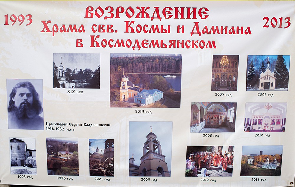 Храм на Воробьевых горах можно назвать университетским — находится недалеко от МГУ, а в то время молодежь уже активно интересовалась христианством, многие воцерковлялись, и среди наших прихожан было много студентов. И когда через два года мне дали указ восстанавливать этот храм в Космодемьянском, тогда еще полностью разрушенный, со мной сюда пришла группа молодых людей, которые и на клиросе пели, и читали, могли плотничать и вообще были мастерами на все руки.