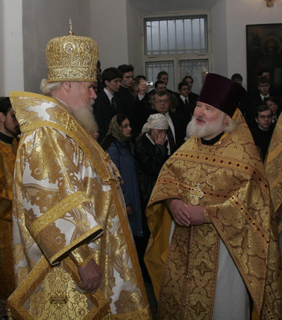 Наши преподаватели-священники нередко участвовали в патриарших богослужениях, и некоторые из них регулярно проповедовали за патриаршими службами в храме Христа Спасителя. Патриарх любил хор нашего университета, и его ежегодно приглашали на патриаршие службы, совершаемые в Успенском соборе. Наш хор всегда пел на патриарших службах и на Бутовском полигоне.