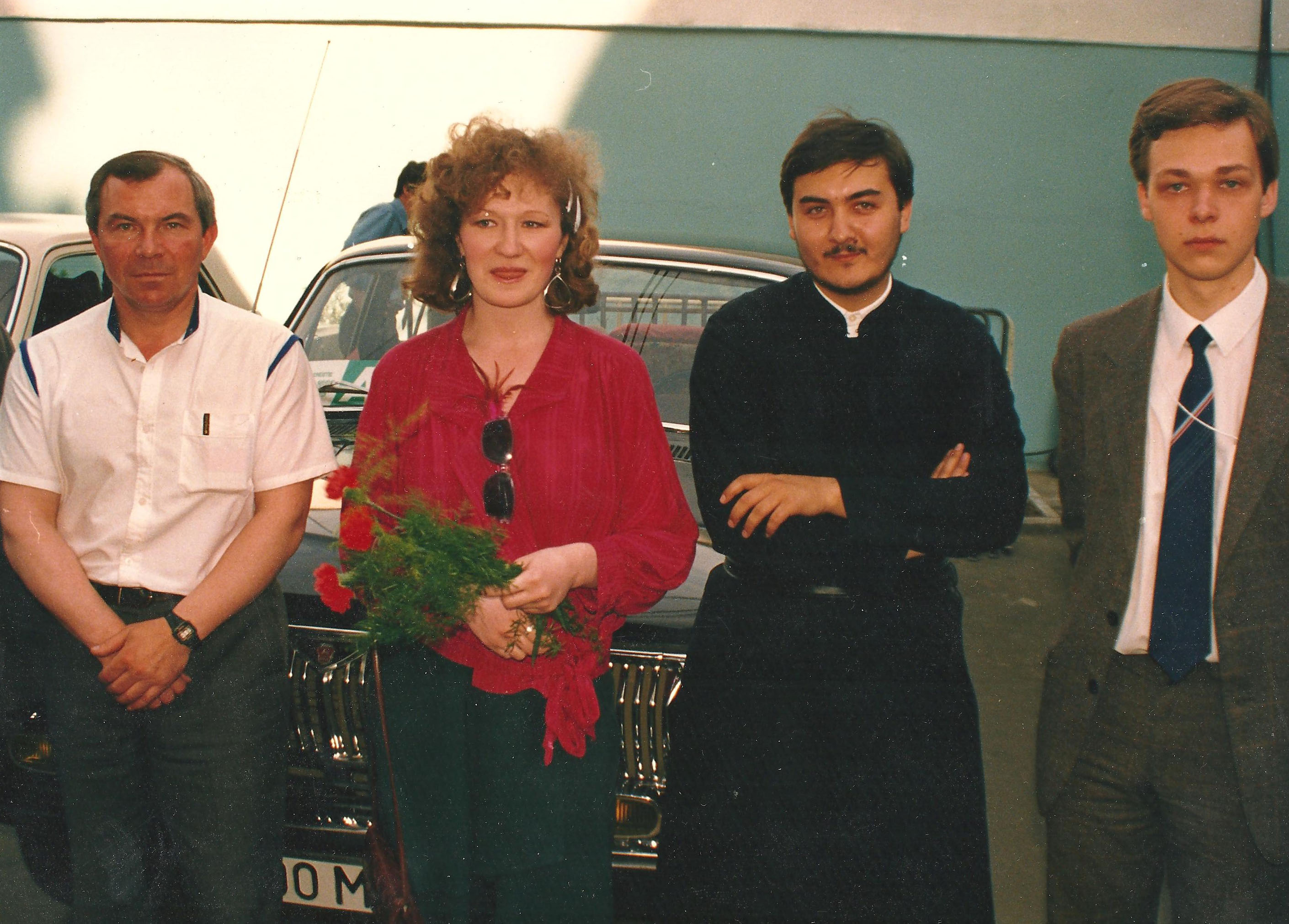 В центре — Олег Стеняев и Сергей Девятов (ныне митрополит Томский Ростислав), слева — Дмитрий Власов, сзади Всеволод Чаплин и Юрий Шубин. Начало 80-х, Троице-Сергиева Лавра