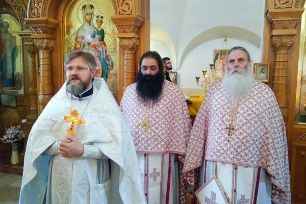 На совместной литургии с гостями из Греции — архимандритом Нектарием и иеромонахом Христодулом. Фото: Facebook