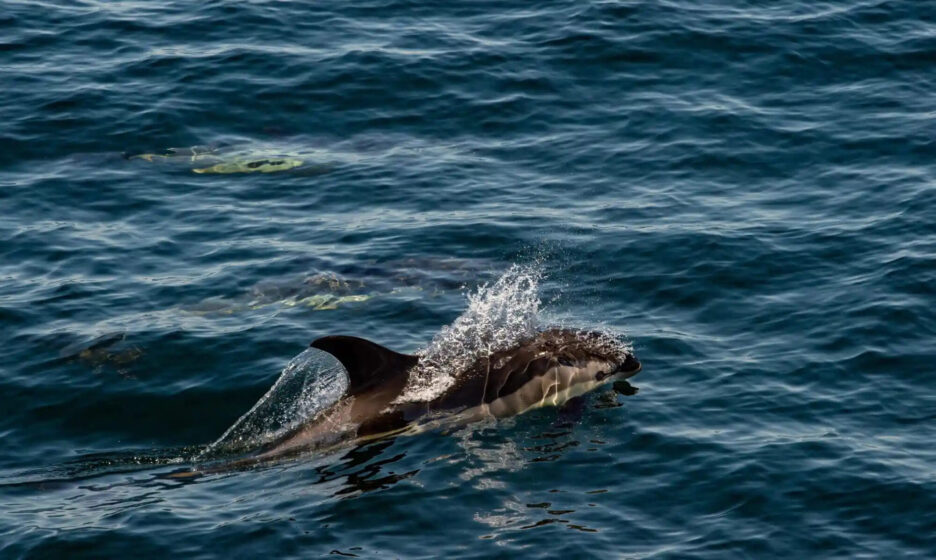 Белобокие дельфины плавают и кормятся в заливе Мэн, штат Массачусетс, США. Фото: Джозеф Прециозо/AFP/Getty Images