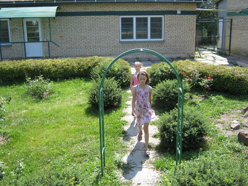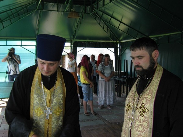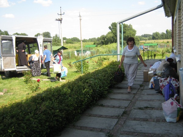 Частная база отдыха, которая теперь стала приютом для беженцев, находится в самом центре села. Кроме двух корпусов здесь есть пруд и детская площадка, все утопает в зелени и розах. Первый день работы центра начинается с молебна. Служит местный священник Николай Брега.