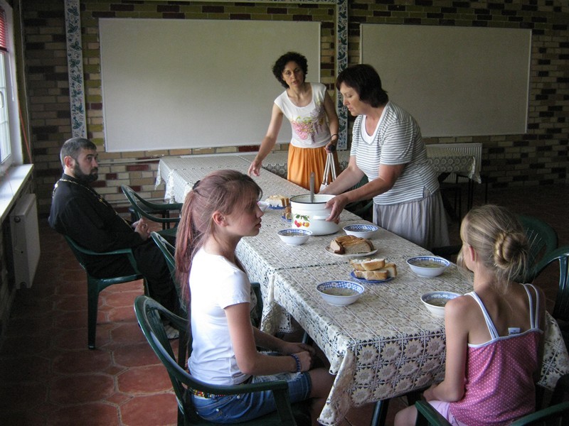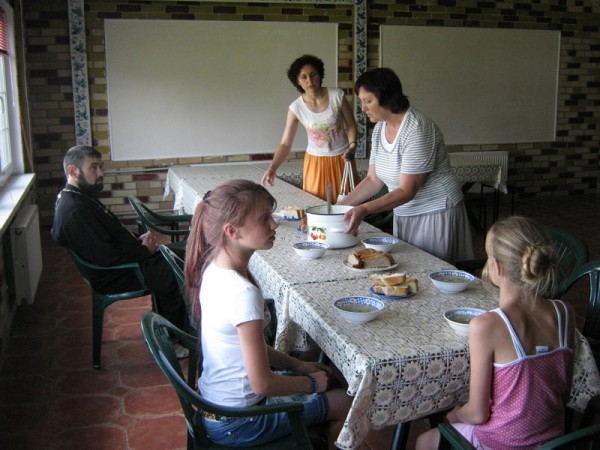 Геннадию помогает его жена, Аня. Кроме нее в центре работают еще 5-6 волонтеров. Приехавших расселяют по комнатам, а тем временем уже готов обед. Общая молитва перед едой для многих еще в диковинку, но все внимательно вслушиваются в слова «Отче наш» и крестятся. После трапезы новые жильцы обживаются в своих комнатах, остальные помогают Ане наводить порядок в хозяйстве.