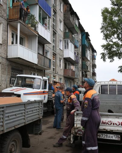 Анна Барне: Самая свежая новость на данный момент — 25 июля в Тулуне эвакуировали жителей 5-этажного здания. Он простоял неделю в воде, первые этажи были затоплены, тем не менее казалось, что все нормально, все позади. Но вчера посередине дома появилась большая трещина, и дом практически развалился на две части. Людей срочно эвакуировали. Я сегодня там была и видела, как люди вытаскивали вещи, мебель с помощью военных и МЧС, грузили в машины и увозили. Дома этой застройки переживают уже третье наводнение (последнее крупное было в 1984 году), и в итоге люди опасаются, что пятиэтажки такой же застройки также придется расселять и ломать.