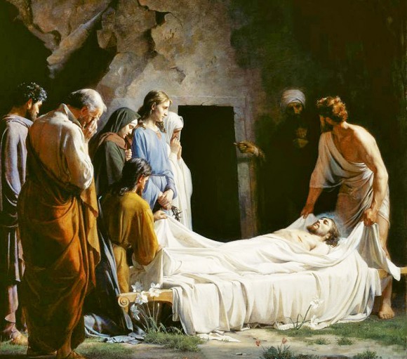 Сотник же (начальник воинов) и воины с ним, которые стерегли распятого Спасителя, видя землетрясение и все происходившее перед ними, испугались и говорили: «истинно, человек этот был Сын Божий». А народ, бывший при распятии и все видевший, в страхе стал расходиться, ударяя себя в грудь. Наступил вечер пятницы. В этот вечер надлежало вкушать Пасху. Иудеям не хотелось оставлять на крестах тела распятых до субботы, потому что пасхальная суббота, считалась великим днем. Поэтому они просили у Пилата позволения перебить голени распятым, чтобы они скорее умерли и можно было их снять с крестов. Пилат позволил. Воины пришли и перебили голени разбойникам. Когда они подошли к Иисусу Христу, то увидели, что Он уже умер, и потому не перебили у Него голеней. Но один из воинов, чтобы не оставалось никакого сомнения в Его смерти, пронзил копьем Ему ребра, и из раны потекла кровь и вода.