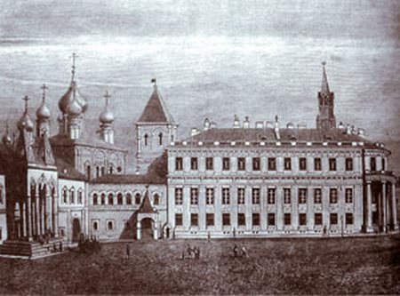Малый Николаевский Дворец, принадлежавший ранее Чудову монастырю, сильно пострадал от орудийного погрома. Снаружи видны громадные сквозные пробоины. Внутри все тоже разрушено, и когда мне пришлось обойти комнаты, то я увидел картину полного разгрома. Громадные зеркала и прочая обстановка дворца варварски разбивались и разрушались. Шкафы разбиты, книги, дела и бумаги разбросаны по всем комнатам. Петропавловская в Николаевском дворце церковь пробита снарядом и разгромлена. Иконостас разбит, сотрясением взрывов распахнулись Царские Врата и завеса церковная разорвана надвое. Отсюда расхищено много ценных икон.