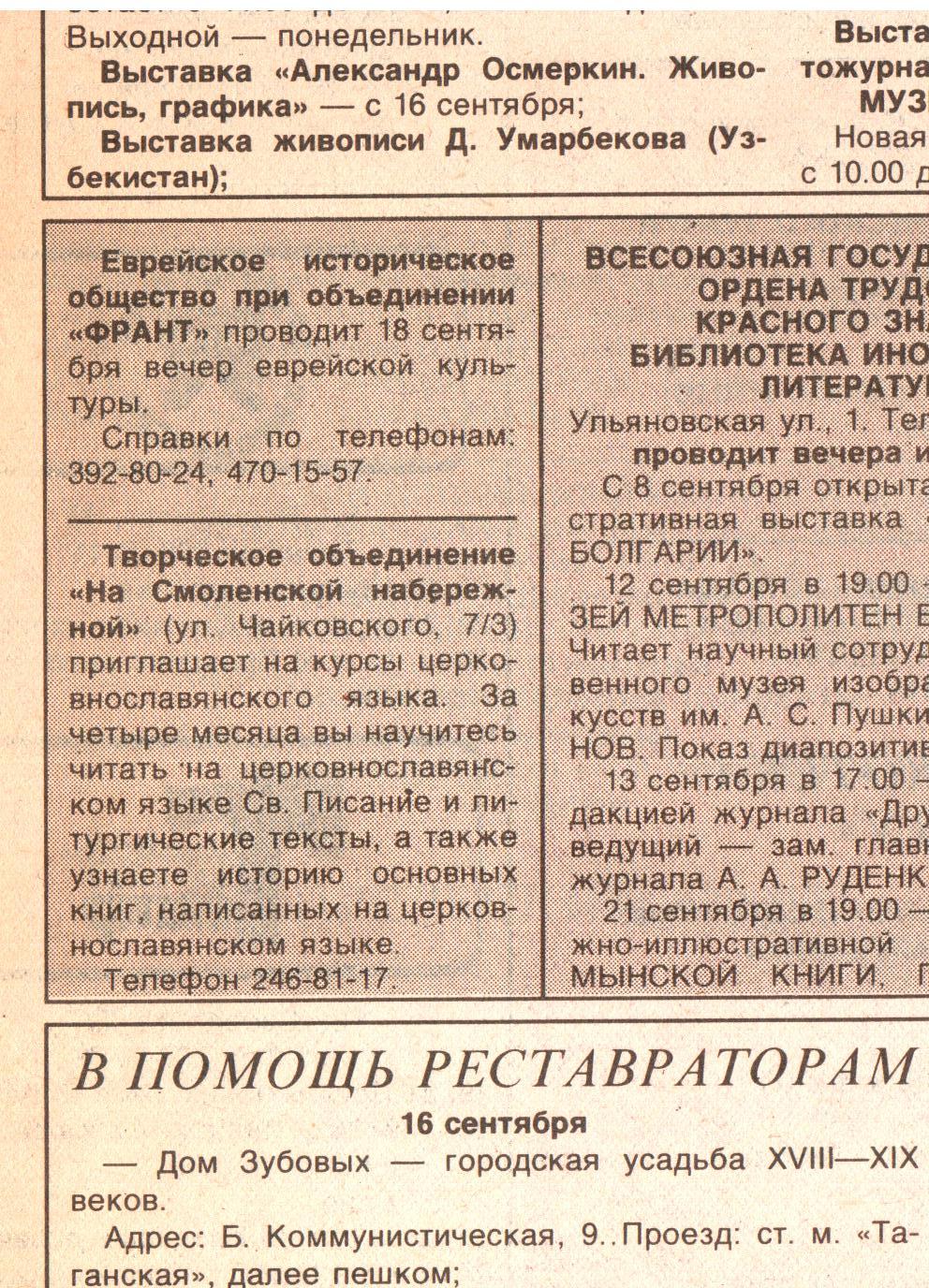 Конец 80-х годов был переходной эпохой, когда границы допустимого, а вместе с ними и правила игры стремительно менялись. Если в начале нашей деятельности райкомовская «крыша» была удобна, поскольку превращала нашу «поповскую пропаганду» в занятие, не вызывающее вопросов у правоохранительных органов, то уже через год нам это стало казаться нелепым. Организацией, которая приняла нас под свое крыло, стала Библиотека иностранной литературы, которую, в результате маленькой внутренней революции, возглавил Вячеслав Иванов.