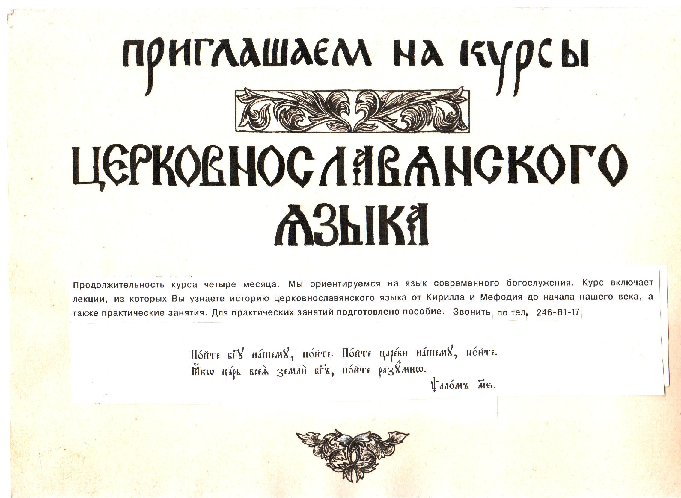 Могу себе представить, какое экзотическое зрелище представляли собой мы – два аспиранта-неофита, в ходе своих университетских занятий что-то узнавшие про церковную письменность и теперь решившие просвещать человечество. Но и наши слушатели были не менее экзотичны. Общедоступных, открыто действовавших курсов такого рода в Москве практически не было, поэтому к нам шли не только те, кто хотел что-то узнать про язык богослужения, но и просто любопытствующие, случайно прочитавшие объявление и желающие узнать про что-то, относящееся к церковной жизни.