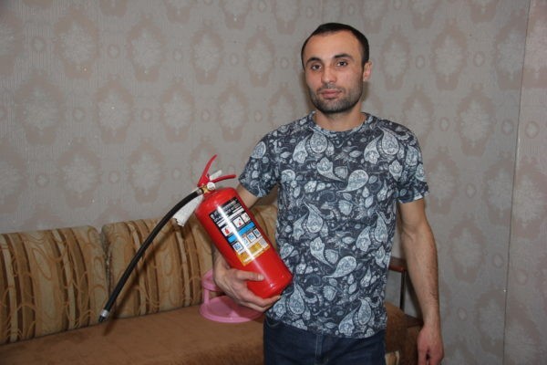 «Мне приятно было, когда подарили огнетушитель. Я его теперь беречь буду», — говорит он и с радостью показывает награду — она стоит среди детских игрушек на шкафу.