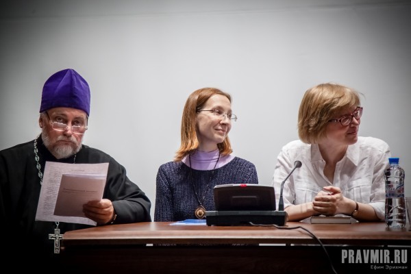 В беседе приняли участие протоиерей Владислав Каховский, настоятель Всехсвятского храма в г. Мытищи; декан факультета психологии РПУ, священник Петр Коломейцев; священник Алексий Агапов, настоятель храма Архангела Михаила в г. Жуковском, филолог; Борис Сергеевич Братусь, доктор психологических наук, профессор, заведующий кафедрой общей психологии МГУ им. М.В. Ломоносова; Александр Александрович Мелик-Пашаев, доктор психологических наук, главный редактор журнала «Искусство в школе»; Марина Евгеньевна Башлыкова, кандидат филологических наук, сотрудник музея древнерусского искусства им. Андрея Рублева и писатель Майя Кучерская.