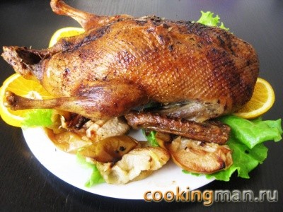 Источник: Утка с яблоками запеченная в духовке — www.cookingman.ru
