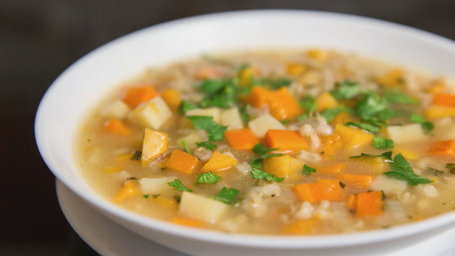 Кабачок нарезать кубиками, добавить в суп. Готовить ещё примерно 20 минут.
