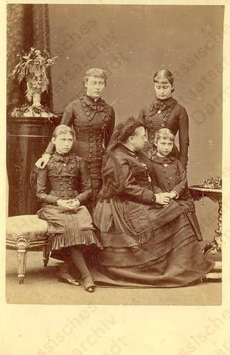 С мамой Цесаревич Николай Александрович Романов и Элла Элла и Алекс со своей бабушкой, королевой Викторией Великий герцог Гессен-Дармштадтский Людвиг IV с дочерьми Эллой и Викторией 1874 год