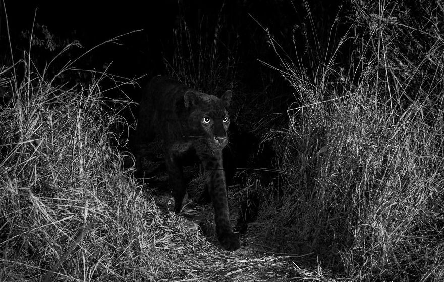 У леопардов-меланистов абсолютно черная шерсть (из-за этого их называют черными пантерами) из-за меланизма, мутации гена, который отвечает за пигмент. Сфотографировать этих животных сложно — последнее фото черной пантеры в Африке было сделано в 1909 году на территории Эфиопии. Больше доказательств их существования на континенте до сегодняшнего дня не существовало.