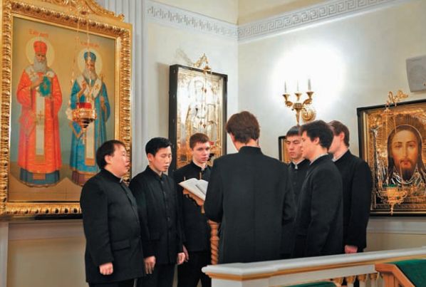 – Мы проводим такой эксперимент, но на поверку он оказывается «малоплодным»: люди занимаются полгода, а потом пропадают, ведь занятия – каждый день. Когда есть работа, это практически невозможно выдержать. Ведь петь на клиросе и тем более руководить хором – серьёзный труд, который требует самоотречения. Это только кажется – пришёл, встал и защебетал. Поэтому отделение церковного пения – дневное. И хотя основной учебный блок идёт вечером, спецпредметы преподаются с утра.