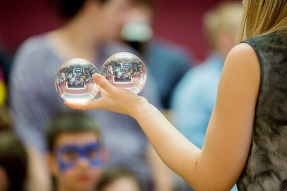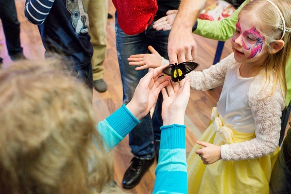 Вслед за открытками и лошадками появляется фокусник с экзотическими бабочками. Бабочек передают с ладошки на ладошку, одна юная леди полчаса ходит по залу, не дыша, — бабочка сидит на её банте, как на цветке.
