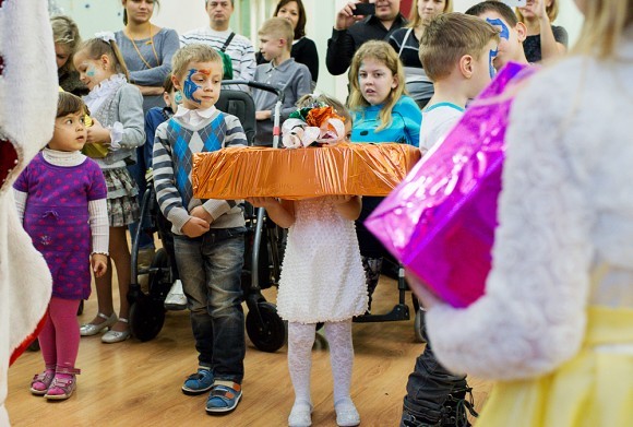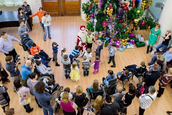 «Всё очень просто, — продолжают Свешниковы, — наш сын болен дистрофией Дюшенна. Раз в полгода-год мы проходим курс реабилитации в больнице. А поскольку диагноз редкий, то больные дети со всего Подмосковья периодически лежат там же. И вот, загоревшись идеей устроить эту ёлку, Ольга просто села вместе с заведующей и обзвонила всех мамочек из базы данных.