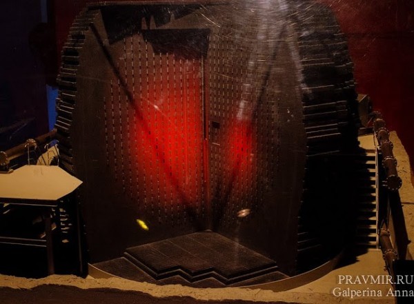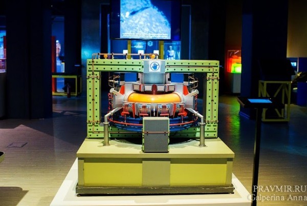 РДС-1 – первая советская атомная бомба. Если даже вы никогда не видели атомных бомб, то, увидев ее, не ошибетесь – это именно она. С хвостом, округлыми боками, величиной в человеческий рост. Макет РДС-1 занимает центральное место блока «Энергия плазмы и энергия ядра».