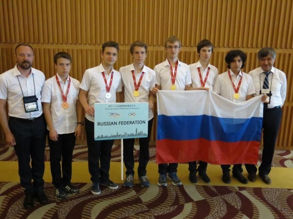 Сборная по математике.В состав российской сборной по математике вошли десятиклассники: Георгий Вепрев, лицей № 2 г.Рыбинск, Ярославская область — бронза; Никита Карагодин, лицей № 239 г. Санкт-Петербург — серебро; и одиннадцатиклассники: Павел Губкин, лицей № 239 г. Санкт-Петербург — золото; Руслан Салимов, школа № 1329 г. Москвы — золото; Иван Фролов, школа № 1329 г. Москвы — золото; Григорий Юргин, лицей «Вторая школа» г. Москвы — золото.