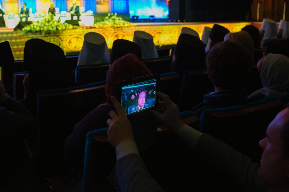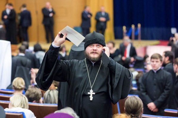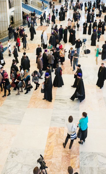 За пару часов до торжественного открытия Рождественских чтений в Государственном Кремлевском дворце можно было наблюдать необычайную концентрацию подрясников и скуфеек, платочков и юбок в пол на фуд-корте «Охотного ряда». Через час после завершения торжественной части форума в метро всё еще втекал широкий ручей «отцов, братий и сестер». Видимо, примерно так должна выглядеть Россия, когда (если) цели Рождественских чтений будут достигнуты.