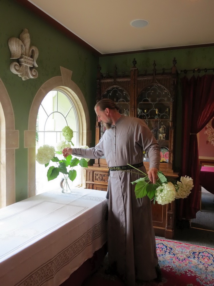 Мы стали работать и приводить в порядок помещение, где отец Пахомий готовил трапезы для собиравшихся на духовные беседы прихожан. Сначала это был типичный американский церковный зал с желтыми стенами. За месяц мы все сами перекрасили и отделали мрамором. У батюшки хороший вкус, умелые руки и невероятная работоспособность. И вскоре на территории обители уже было представительное помещение под ресторан, смотревшееся „под старину“. На открытие пришло много прихожан».