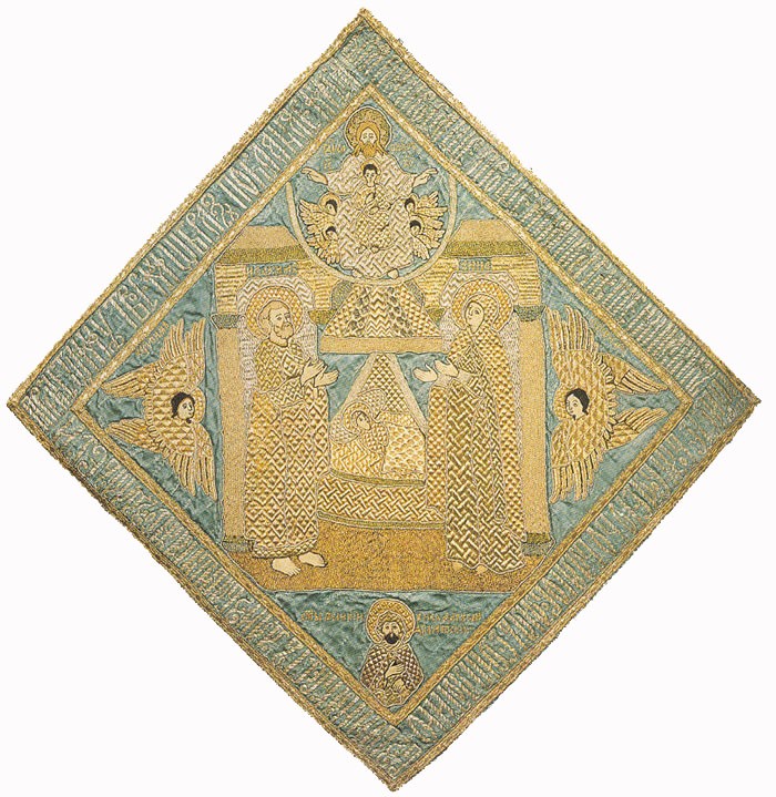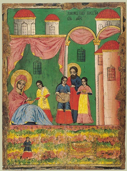 Рождество Богоматери с избранными святыми. Новгород. Конец XIV — начало XV вв. Третьяковская галерея, Москва