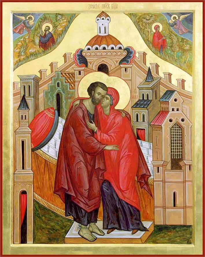 Иконы более позднего времени содержат много подробностей, рисующих живую обстановку дома праведных Иоакима и Анны. На них появляются изображения стола с принесенными дарами и угощениями, водоема, птиц. Введение этих деталей, подчеркивающих земной, человеческий строй всего изображения, несомненно, имеет глубокий смысл. Авторы иконографического сюжета преследовали цель сделать простых зрителей причастниками радостного события, которое не только некогда освятило дом праведников, но и озарило всю вселенную.
