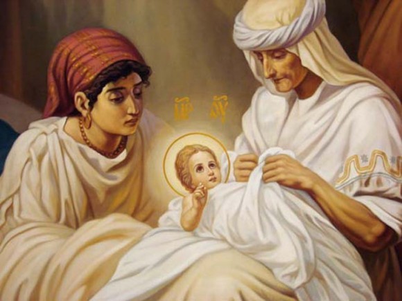 Развернутая история Рождества Пресвятой Богородицы нередко изображается на клеймах икон этого праздника или на фресках в рамках иконографического цикла, посвященного данному событию. Их содержание следует дословно событиям, описанным в древнем предании: праведный Иоаким приносит свою жертву в Иерусалимский храм; первосвященник отказывается принять жертву у безчадного как имеющего тайные грехи; плач Иоакима в пустыне; плач Анны в саду; моление Иоакима; моление Анны; благовестие Иоакиму и благовестие Анне; встреча супругов у Золотых ворот Иерусалимского храма; беседа Иоакима и Анны; собственно Рождество Богородицы; ласкание Девы Марии (Иоаким и Анна сидят рядом, придерживая Новорожденную).