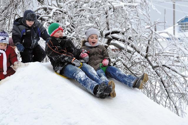 Балашиха. Это наши дети после Рождественской ночной службы и трапезы, и мы катались — те, у кого силы еще были. Фото Светланы Ромашовой