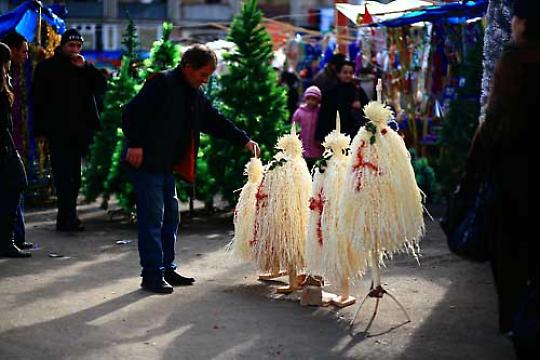 Есть и другие широко распространенные обычаи. Так, например, задолго до рождественской елки в Грузии ставили чичилаки — ореховый прут, с которого не до конца снимают тоненькие полоски древесины. Таким образом, на верхушке оставался сноп курчавых «волос». В эту копну (кстати, в народе ее именуют «борода святого Василия» — в честь святого, память которого отмечается в Новый год по старому стилю) вставляется деревянный крестик, а на него вешают гранаты, яблоки и яйца. Вокруг выкладываются красные ягоды.