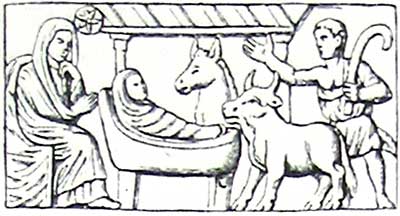 Поклонение волхвов и пастухов. Прорись ампулы. Палестина. VI-VII в. Собрание собора г. Монцы, Италия